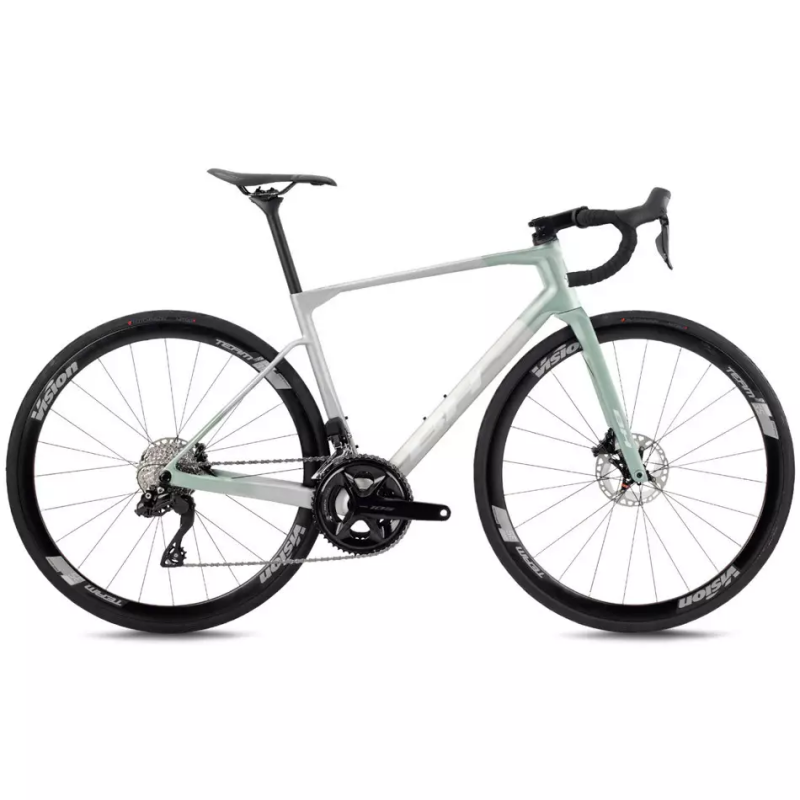 Bicicleta de carretera BH SL1 4.0 2026 con cuadro de carbono SL1 Disc Monocoque. Equipada con grupo electrónico Shimano 105 Di2 de 12 velocidades, frenos hidráulicos Shimano 105 y ruedas Vision Team35 entre otros componentes. Monta bielas 52-36, cassette 11-34 y componentes BH en manillar, potencia y tija. Ideal para rodar con eficiencia y precisión en cualquier terreno. ¡Una oportunidad única para dar el salto al cambio electrónico con un precio imbatible!